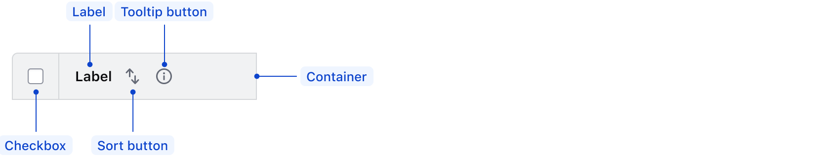 Note: This component is not eligible to receive interactions (e.g., it cannot have an onClick event handler attached directly to it). Instead, an interactive element should be placed inside of the AdvancedTable::Th component.